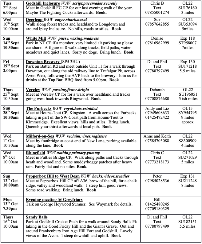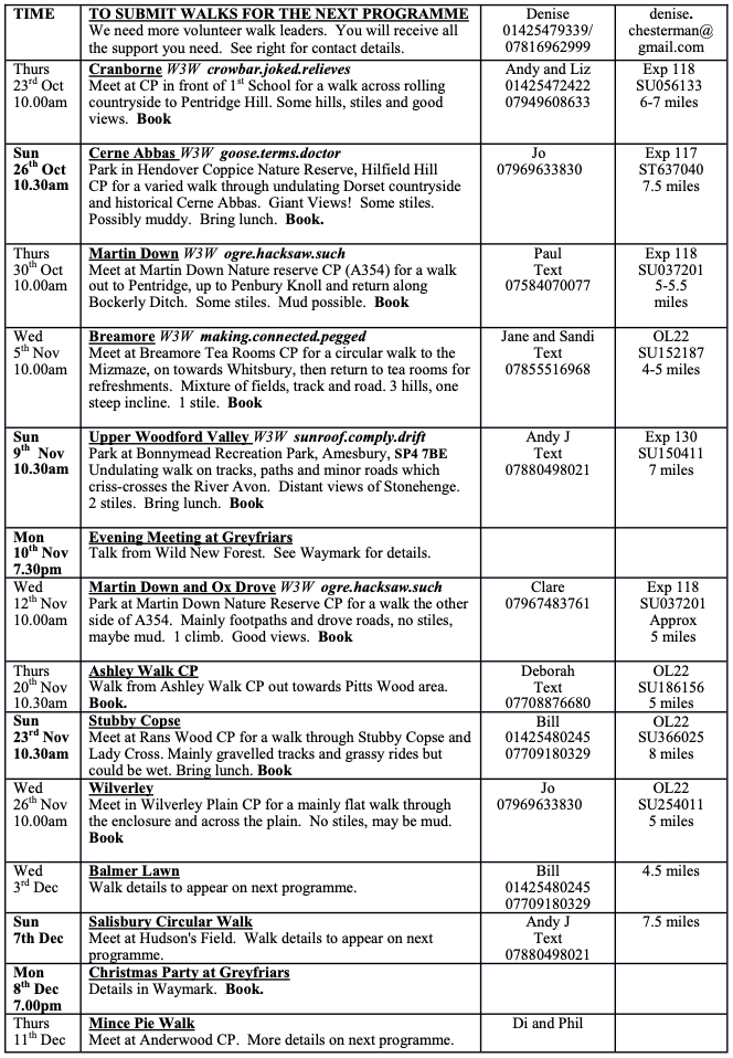 VOLUNTEER TO LEAD A WALK. Help and support will be provided. Walks Secretary, Denise Chesterman on 01425479339 / 07816962999 or email denise@chesterman.co.uk